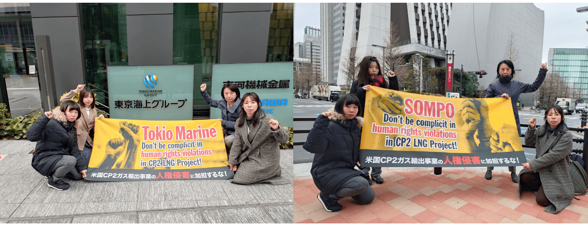 東京海上及びSOMPO本社前にて行われたアクションの様子