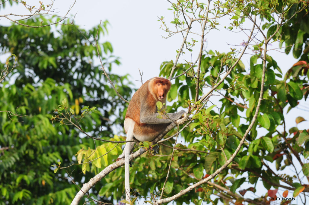 マハカム川流域に生息する絶滅危惧種(EN)のテングザル(写真© Yayasan RASI)